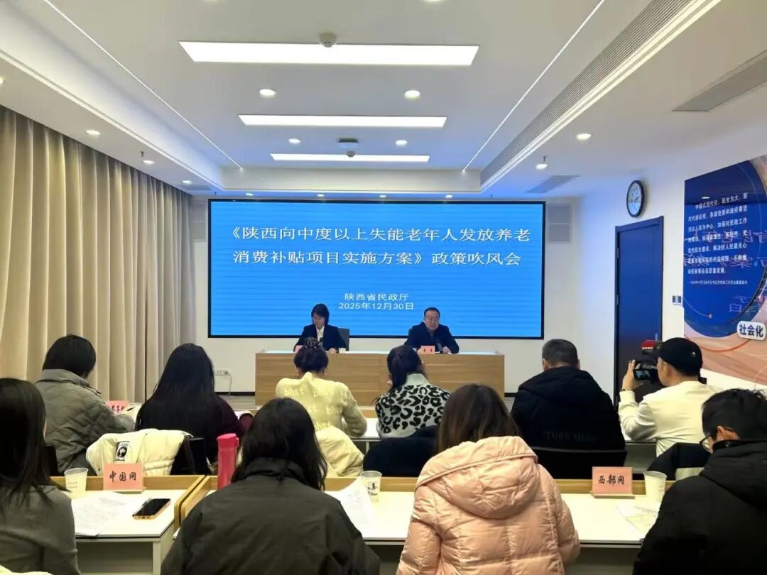 2025年12月30日,陕西省民政厅召开“贯彻落实养老服务消费补贴政策、更好支持失能老年人照护服务”政策吹风会,省民政厅党组成员、副厅长李平出席并详细解读《陕西省向中度以上失能老年人发放养老服务消费补贴项目实施方案》。该方案将于2026年1月实施,为期一年,预计惠及全省约100万失能半失能老年人。
