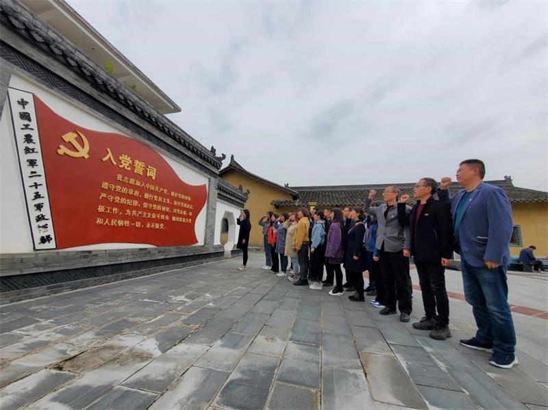 随后,在纪念广场上,在鲜红的党旗下,全体党员高举右拳重温入党誓词,铮铮誓言在纪念广场上空久久回荡。