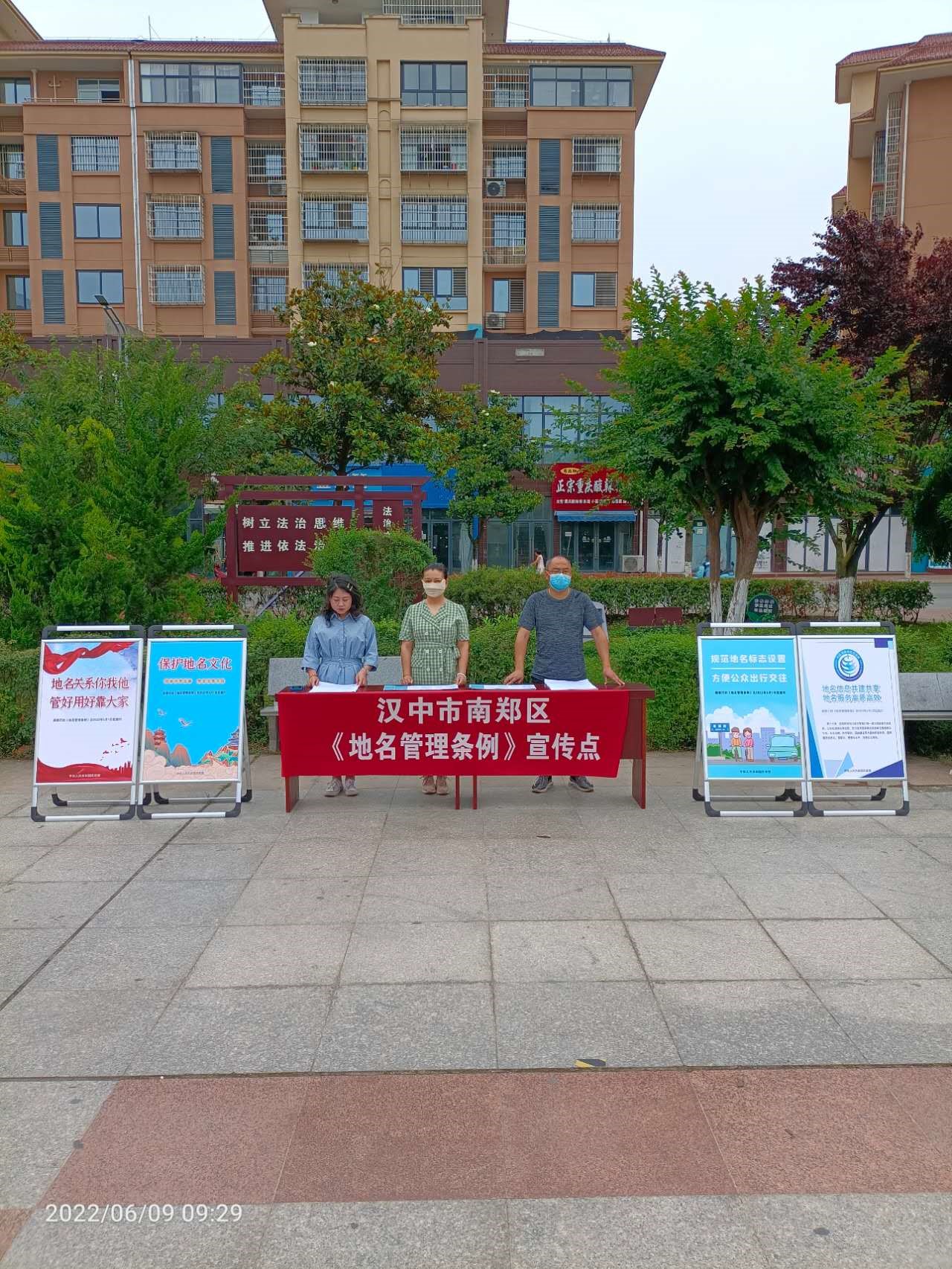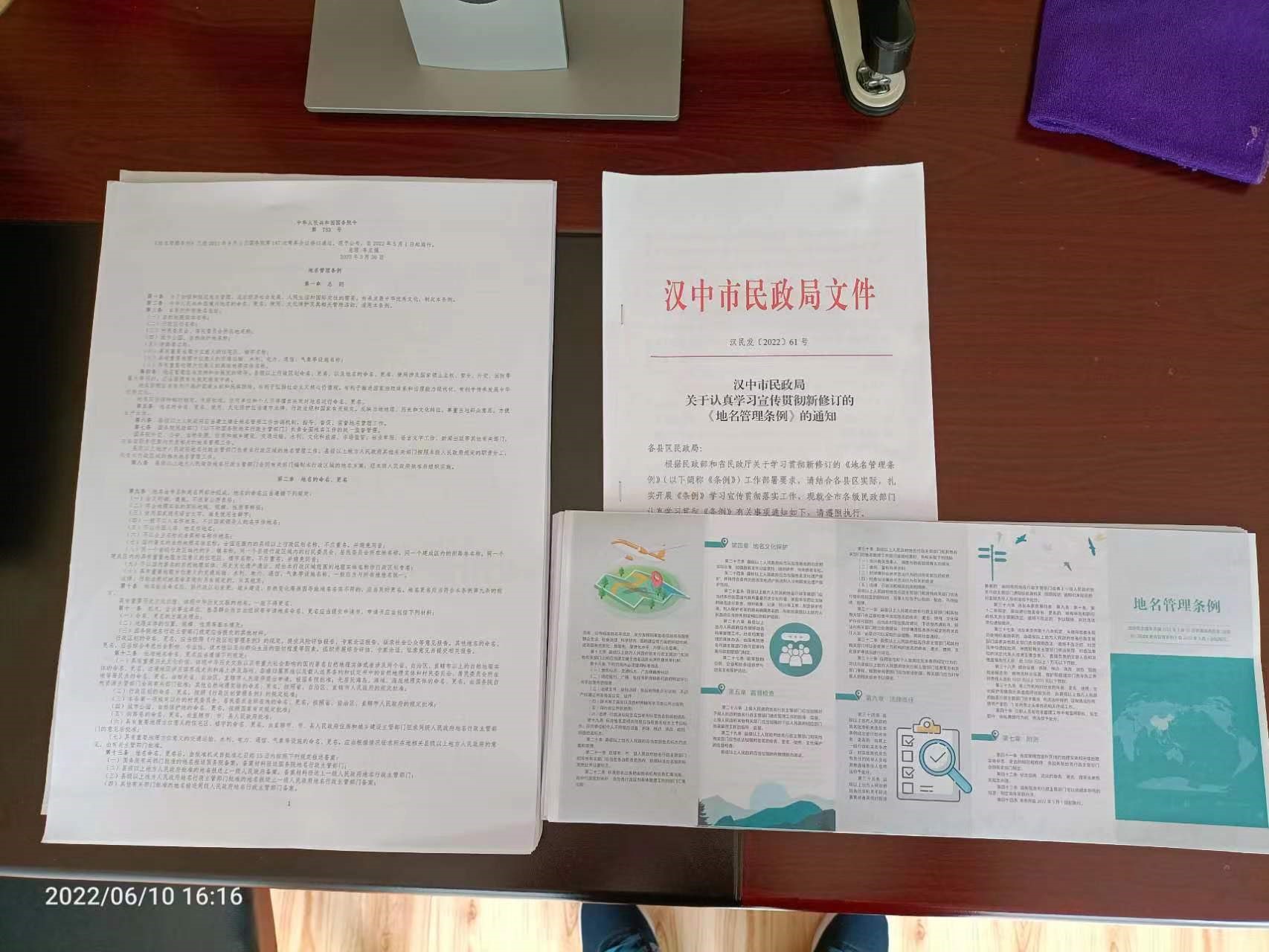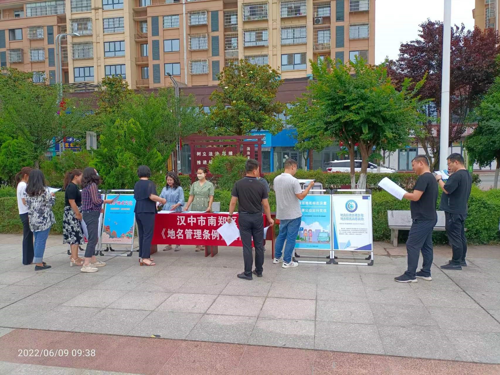 新修订的《地名管理条例》自2022年5月1日起施行以来,南郑区民政局认真落实行政主管部门工作职责,积极宣传、贯彻新《地名管理条例》,并将此次宣传工作作为全局的一项重要工作来开展。分别在城区民乐园和大河坎镇桥南广场、民政服务大厅等场所组织开展了《地名管理条例》宣传活动。宣传活动共发放《条例》宣传页1100余份,制作宣传展架4套。同时,利用电子屏滚动播放宣传标语,营造了良好的宣传氛围,向群众普及了地名管理有关知识。