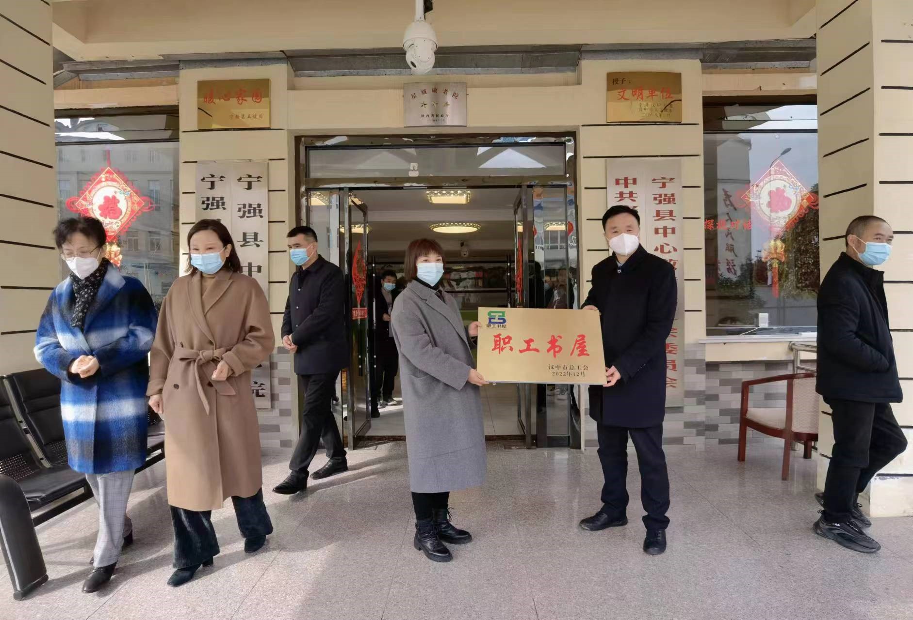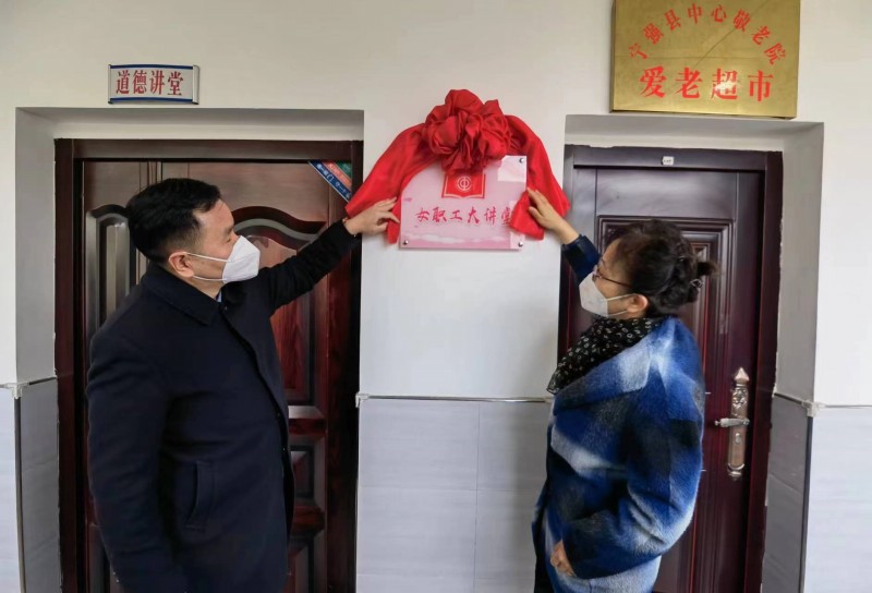 2月14日,省总工会党组成员女职委主任刘皓、市总工会党组副书记、常务副主席张振一行10人,在宁强县人大常委会副主任、县总工会主席许军,工会常务副主席夏琼英陪同下来到县中心敬老院,为中心敬老院“女职工大讲堂”揭牌并授予宁强县“职工书屋”授牌仪式,实地查看了“职工书屋”运行管理情况。
