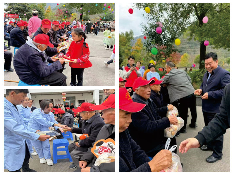 活动中,县中心敬老院、县老年协会、江口幼儿园的小朋友们还为老人们送上了提前准备的菊花茶、重阳糕、艾草锤等慰问品,志愿者们现场为老人们包包子,与老人们共同参与互动游戏。甜香的糕点、温暖的礼物、欢快的歌声交织在一起,构成了一幅温馨的敬老画卷。