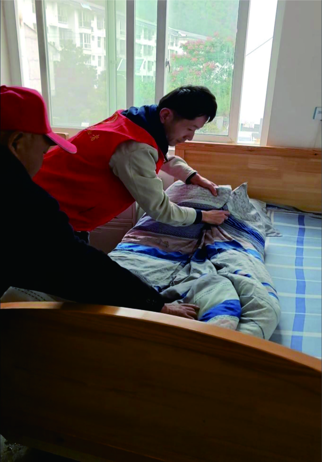 与此同时,江口镇民政专干带领志愿者们一同走进老人宿舍,帮他们整理房间,与老人们促膝谈心,详细询问他们的饮食起居和身体状况,认真记录下老人的需求与心愿。“最近睡得好不好?食堂的饭菜合胃口吗?”一句句关切的问候,一声声温暖的叮咛,让老人们深切感受到家人般的关怀。