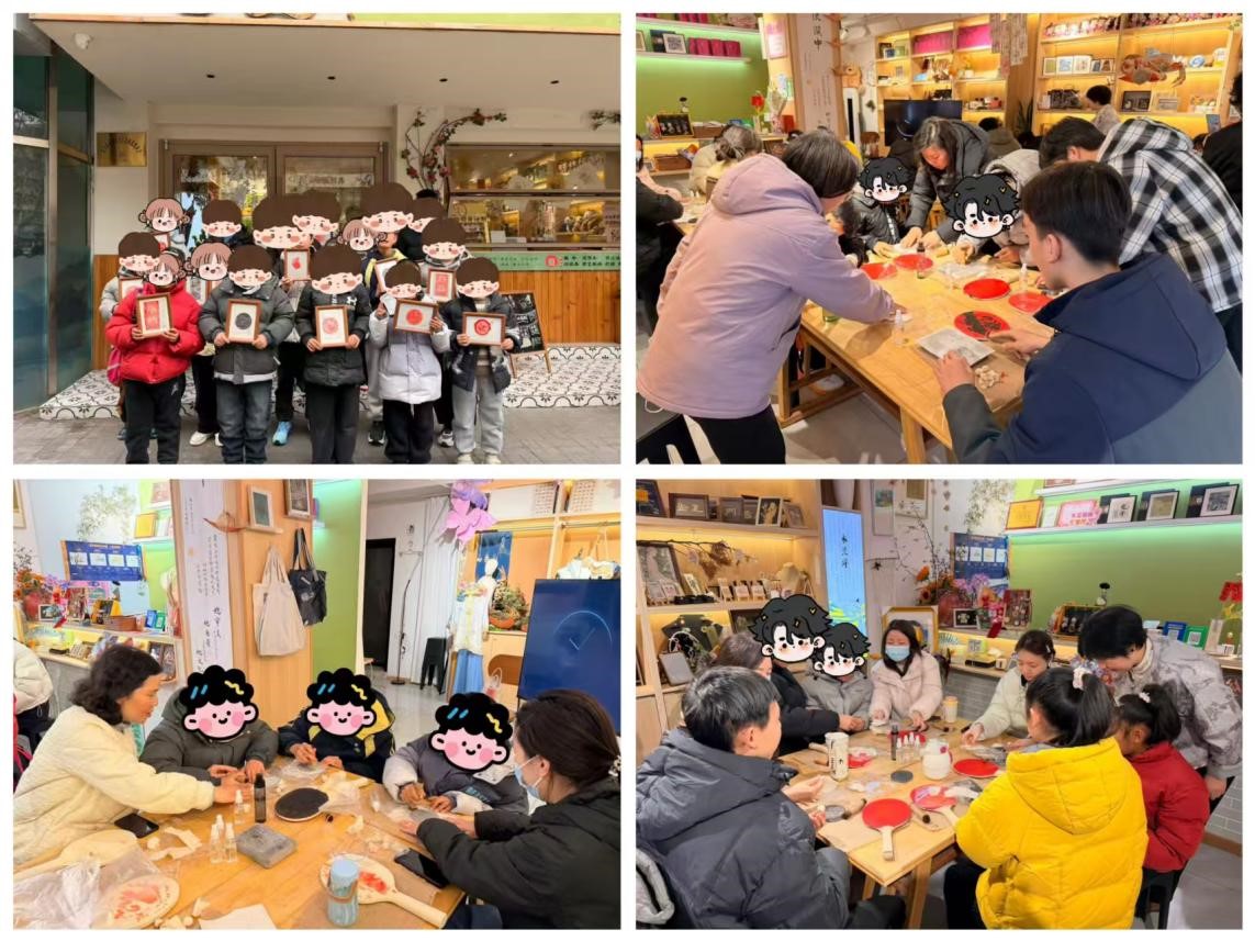 当日,在工作人员的暖心陪伴与细致照料下,孩子们满怀期待地走进位于东大街的一家文创店,一场与传统拓印技艺的深度邂逅就此展开。拓印,作为承载千年历史记忆的“活态化石”,是古人智慧与匠心的结晶。活动现场,指导老师先是娓娓道来拓印技艺的起源与发展,从碑刻传拓的历史价值到非遗传承的当代意义,让孩子们在聆听中感知文化的厚度;随后通过分步示范、耐心指导,带领孩子们沉浸式体验上墨、覆纸、匀捶、揭纸的完整工序。当一方方承载着传统纹样与文字的拓印作品在孩子们手中缓缓成型,惊喜与成就感溢于言表——他们不仅亲手复刻了历史的印记,更在指尖的温度中触摸到了非遗技艺的精妙肌理,在专注与坚持中体会到了匠人精神的内核。