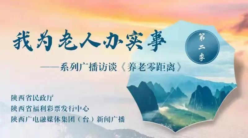 为满足老年人日益增长和多层多样的服务需求,进一步增强老年人的获得感、幸福感、安全感。陕西省民政厅、陕西省福利彩票发行中心与陕西广电融媒体集团(陕西广播电视台)新闻广播共同推出系列节目《养老零距离》第二季——我为老人办实事。第二季节目将邀请各地市民政部门负责同志走进直播间,宣讲介绍养老服务政策,分享“关爱老人,享受美好生活”行动中涌现出来的先进事迹和感人故事。